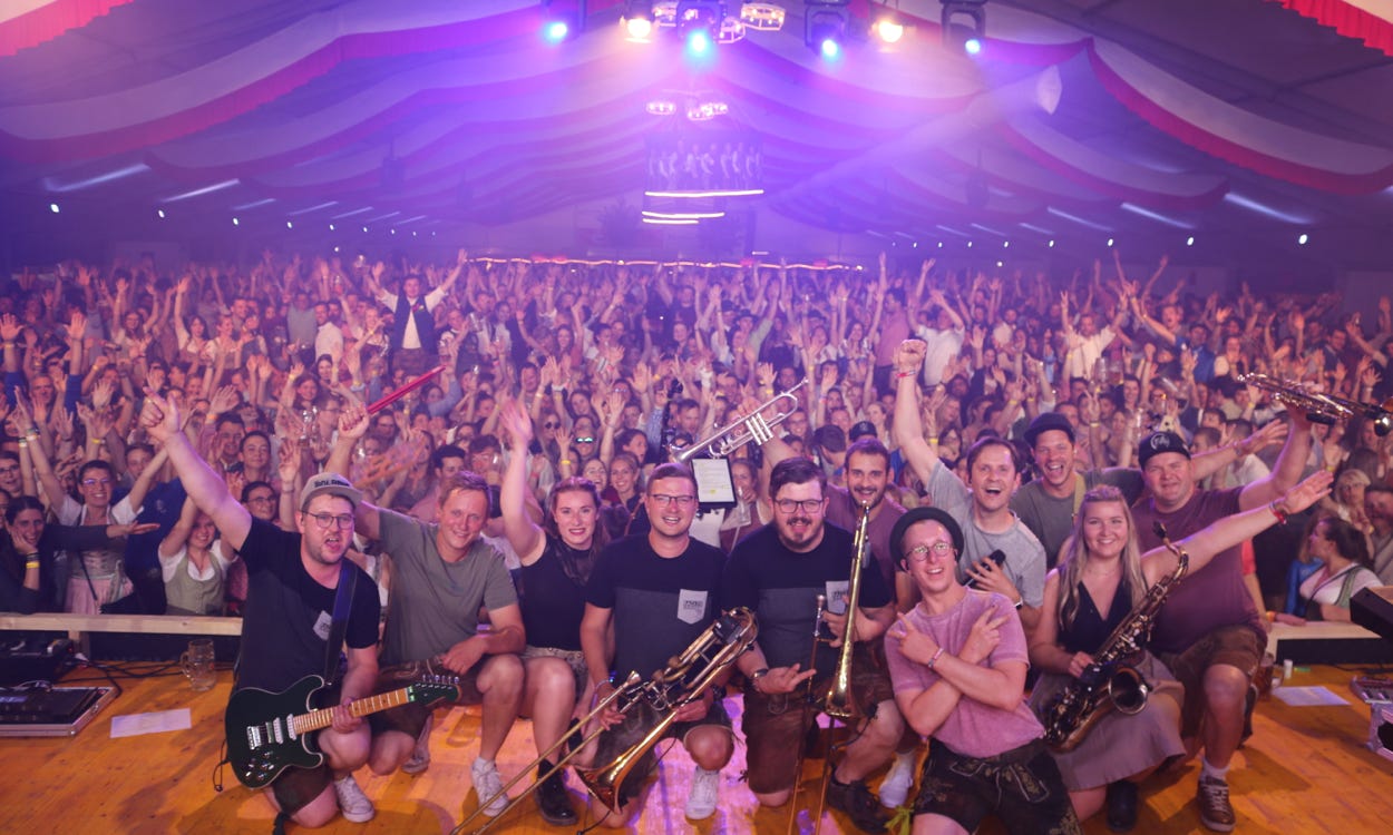 Daran beteiligt war und ist nach wie vor die Mischung aus einer total durchgedrehten Bläsercombo, die sich zumindest im Proberaum immer wieder mit einem Haufen an elektrischen Instrumenten kreuzt. Wie sich so etwas im Bierzelt, bei einem Feuerwehrfest anhört müsst ihr, wie schon erwähnt, selbst überzeugen. Also dann...